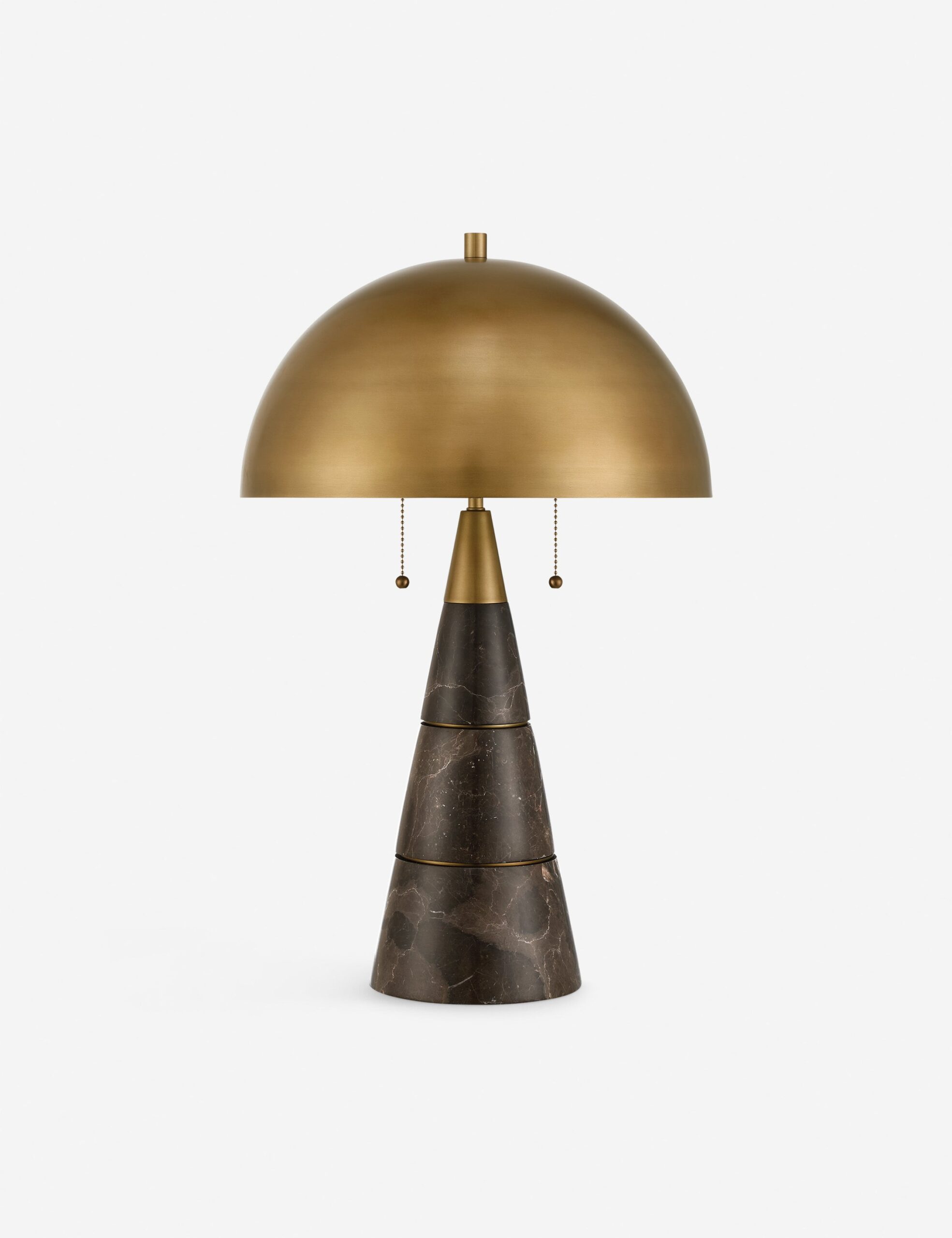 Camilo Desk Table Lamp is a luxury desks & consoles from Primavera Club, designed to bring elevated style and refined comfort to your home. A domed brass shade crowns this desk lamp with a bold profile. Below, a tapered marble base rises in stacked sections, punctuated by slim brass bands that sharpen the silhouette and ground the design