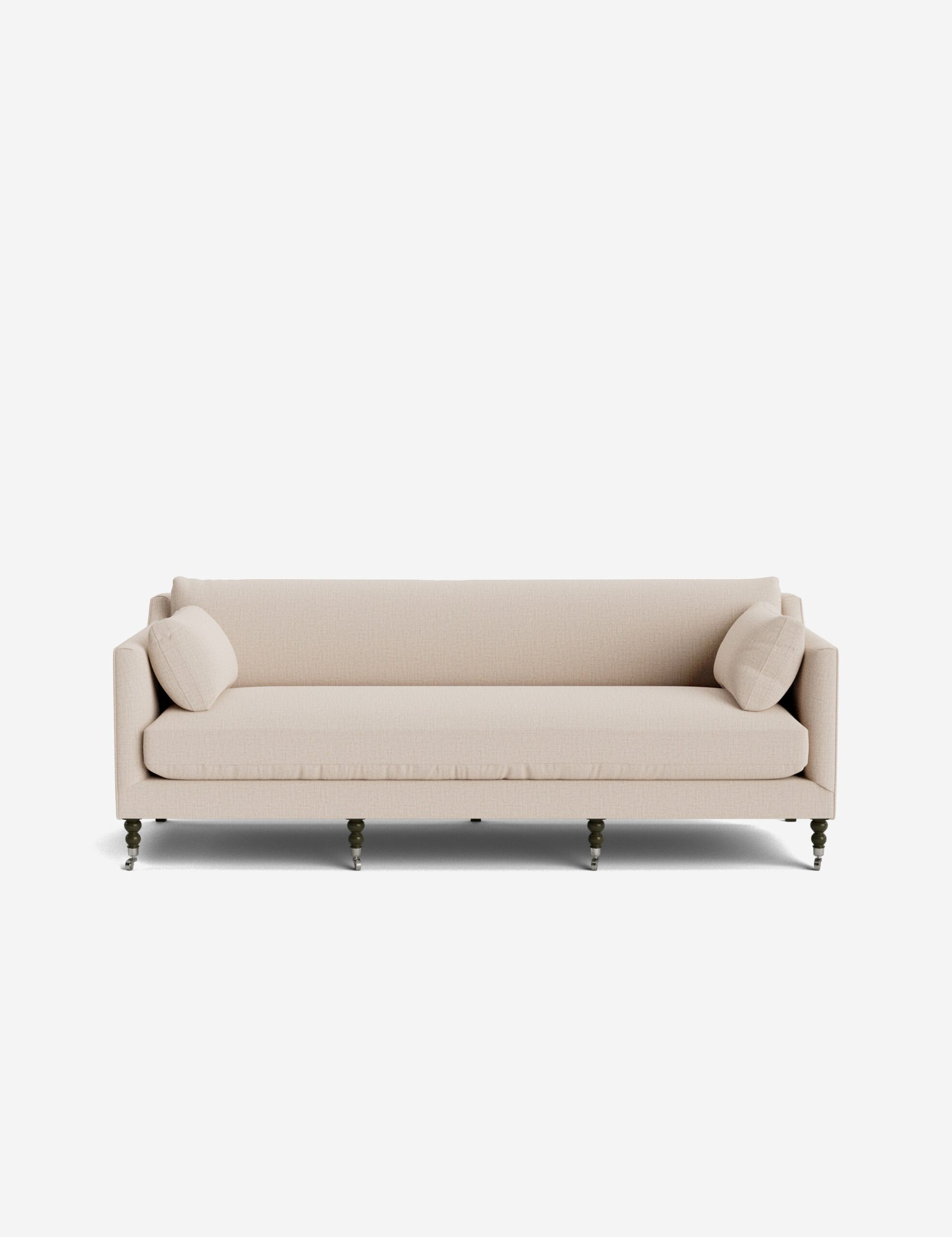 Fabienne Sofa is a luxury sofas & sectionals from Primavera Club, designed to bring elevated style and refined comfort to your home. Add a touch of vintage flair to your living room or office with the Fabienne sofa. Antique, muted olive velvet meets traditional curved legs in the back and ornate shaped legs in the front. Finished