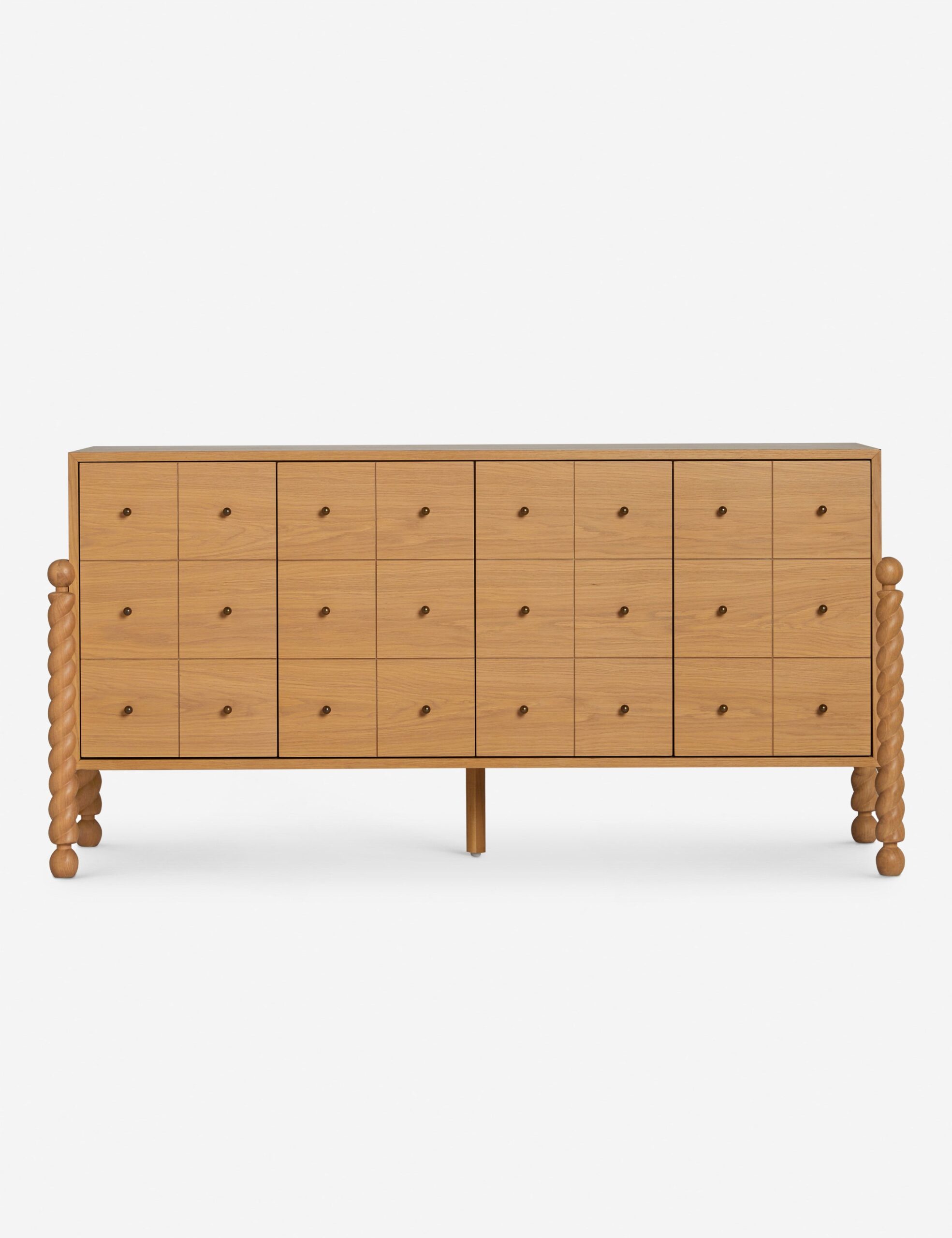 Hawser Sideboard by Sarah Sherman Samuel is a luxury storage & shelving from Primavera Club, designed to bring elevated style and refined comfort to your home. With a refined blend of shape and line, the Hawser sideboard showcases sculptural, turned legs that frame a clean-lined case. A grid detail with button pulls sets off the natural wood grain, with