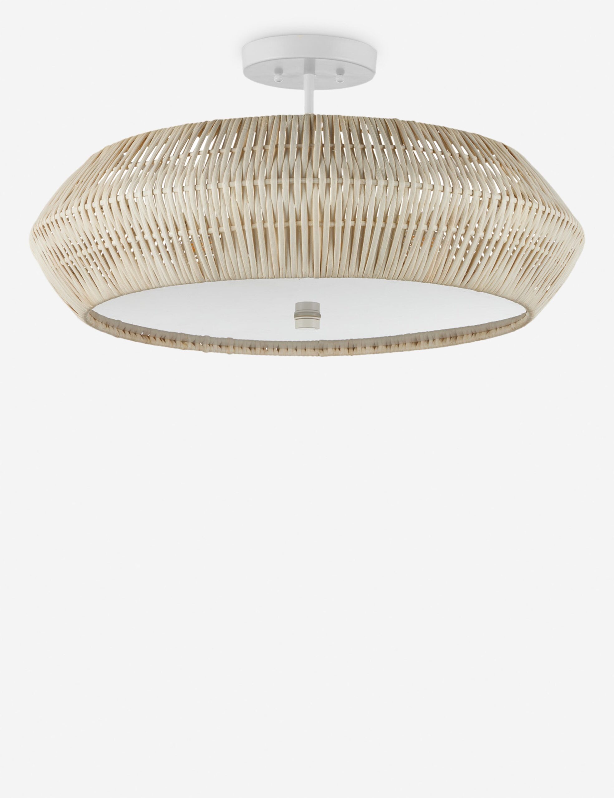 Katriel Semi-Flush Mount Light is a luxury lighting from Primavera Club, designed to bring elevated style and refined comfort to your home. Style a touch of texture overhead with the Katriel semi-flush mount. A woven rattan design bounds the light with an attractive shape and organic feel that will elevate the room. A plate of colored